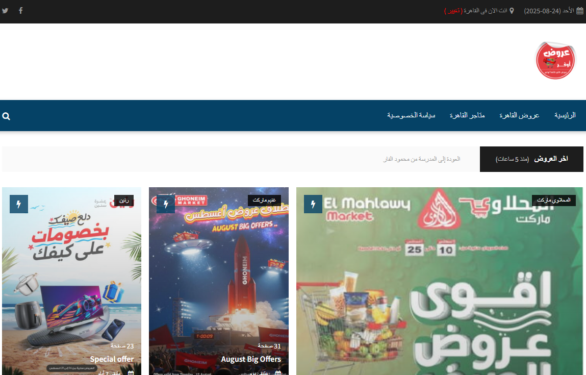 موقع الكتروني خاص بالعروض والتخفيضات من جميع المتاجر والسوبر ماركت والهايبر ماركت من مصر و المملكة العربية السعودية وقطر والبحرين والامارات العربية المتحدة وعمان والكويت